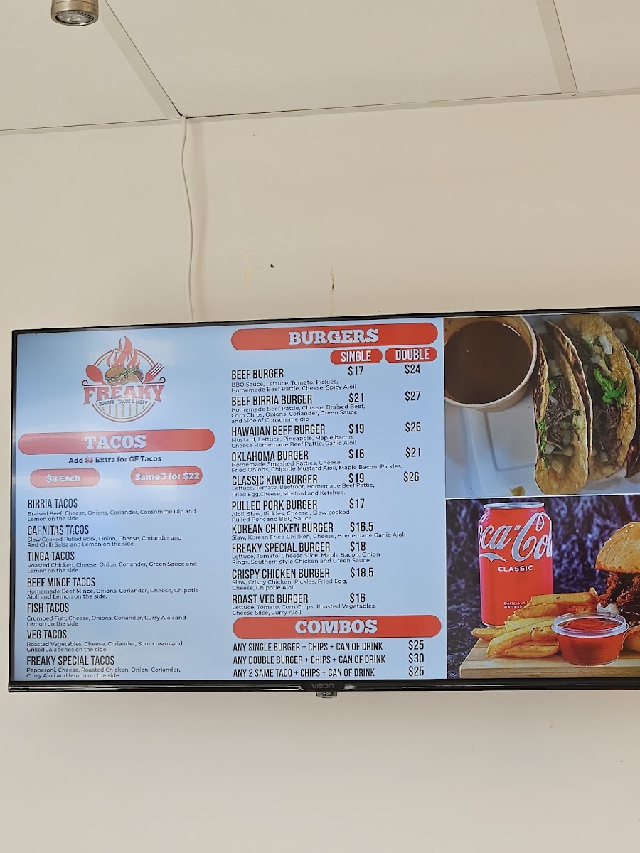 Welcome to Freaky Burger and Tacos Rosedale, a vibrant takeout spot located at 329 Albany Highway, Auckland. This eatery promises an exciting menu that celebrates bold flavors and generous portions.